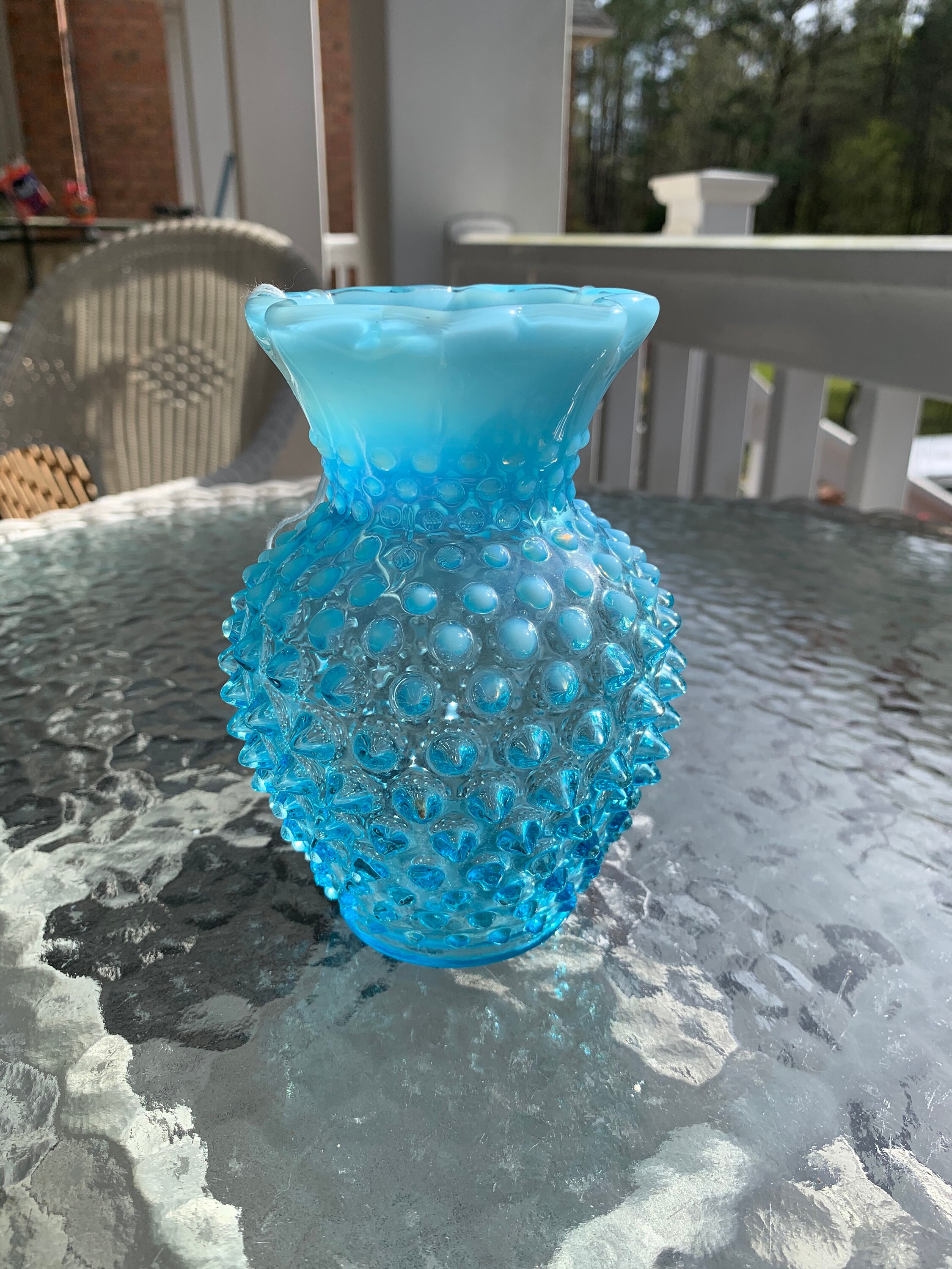 Vintage 1940 Fenton Hobnail Blue Art Glass Opalescent Vase Ebay