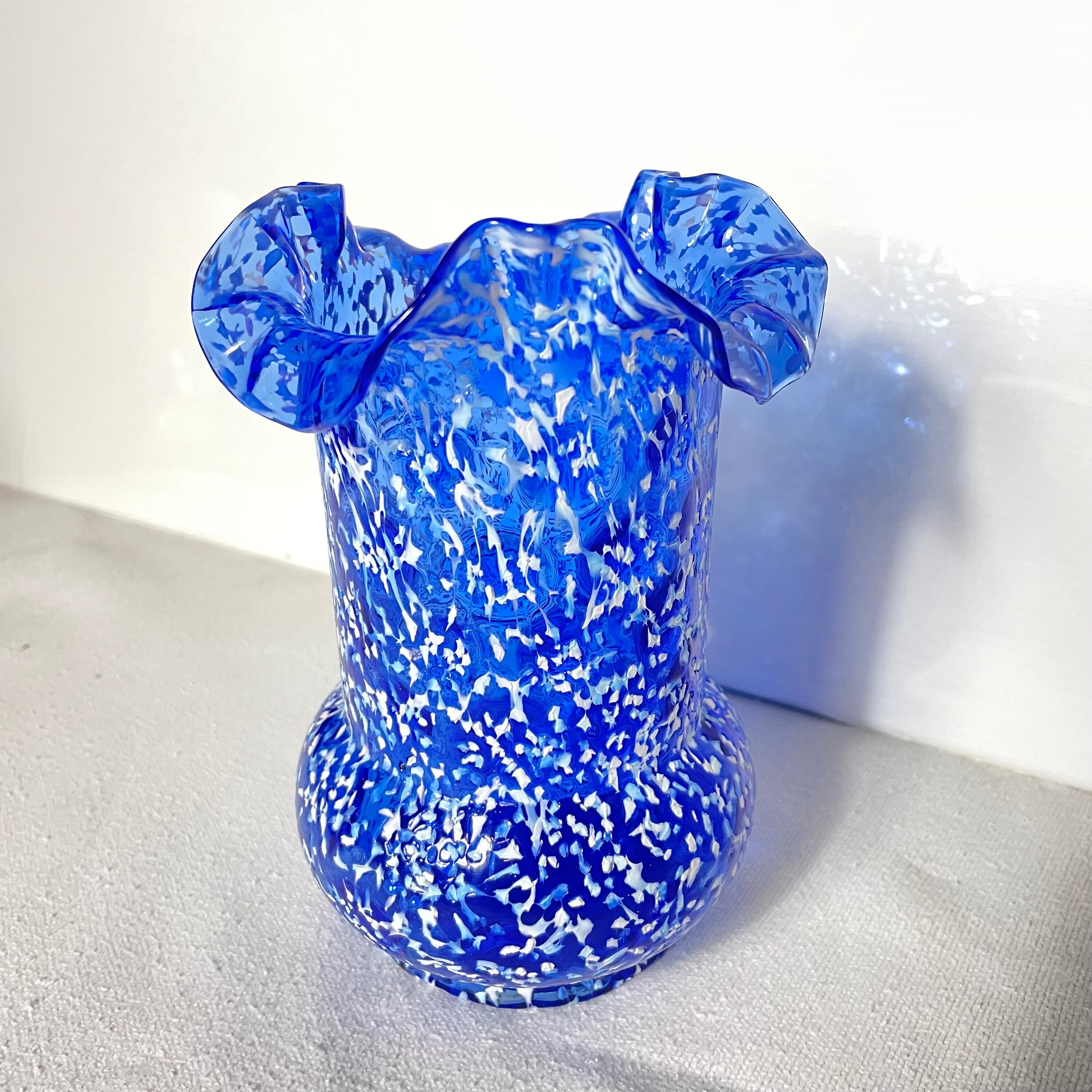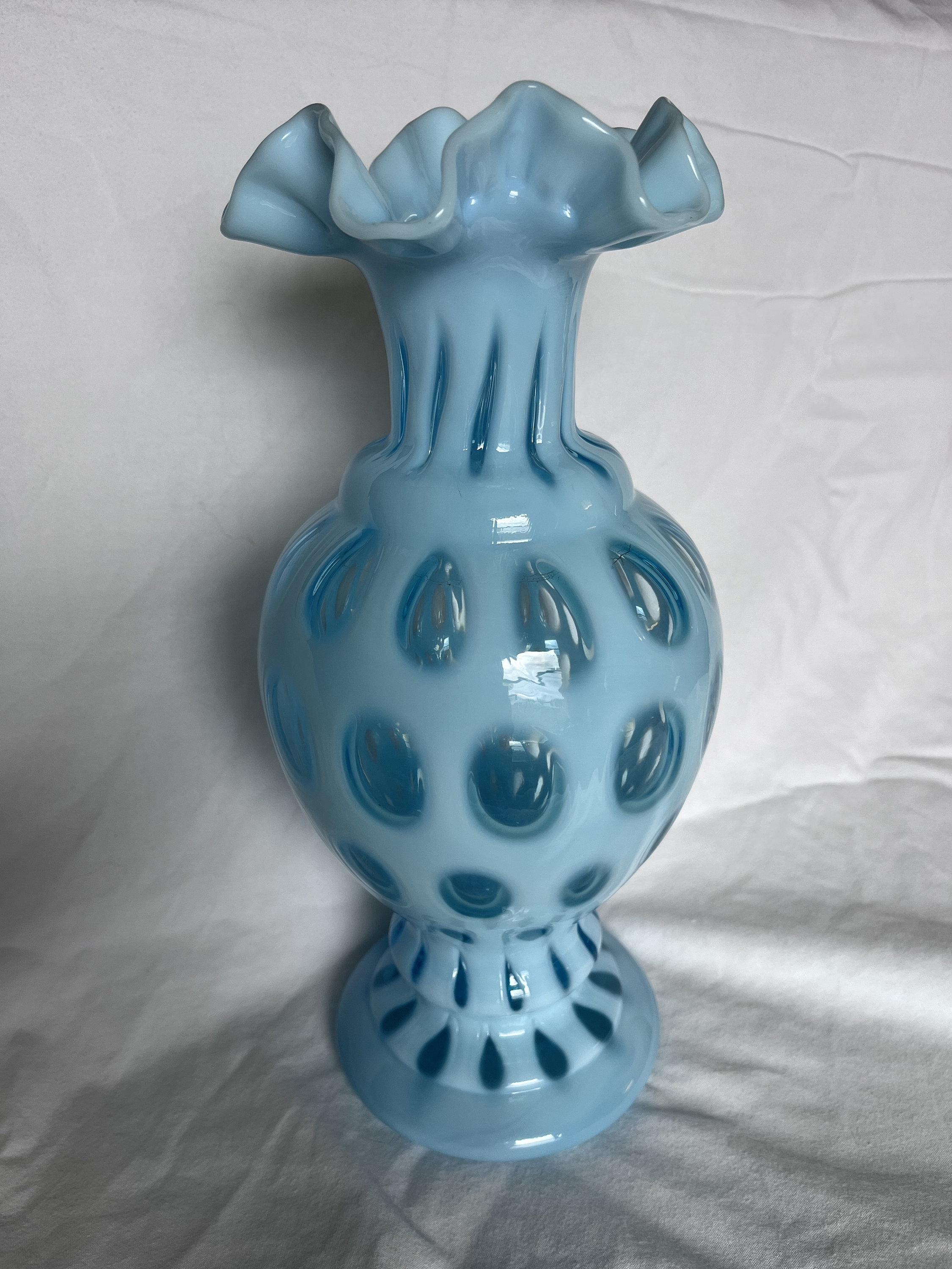 Fenton Glass Vintage Hobnail Blue Opalescent Ruffled Vase Vintage Ebay