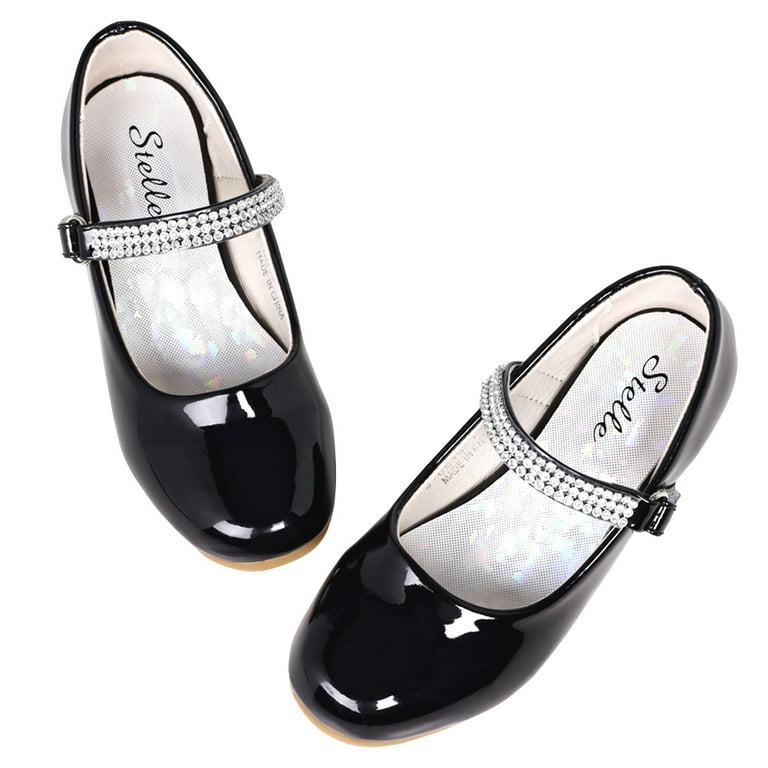 Stelle Girls Mary Jane Shoes Low Heel Princess Wedding Flower Girl Dress Shoes Non Slip Diamond Ankle Strap Party Flats For Kids Black Walmart Com