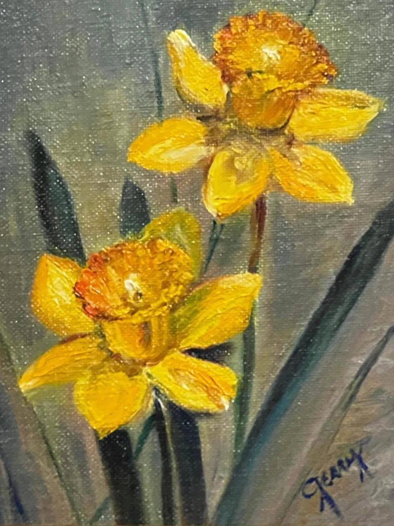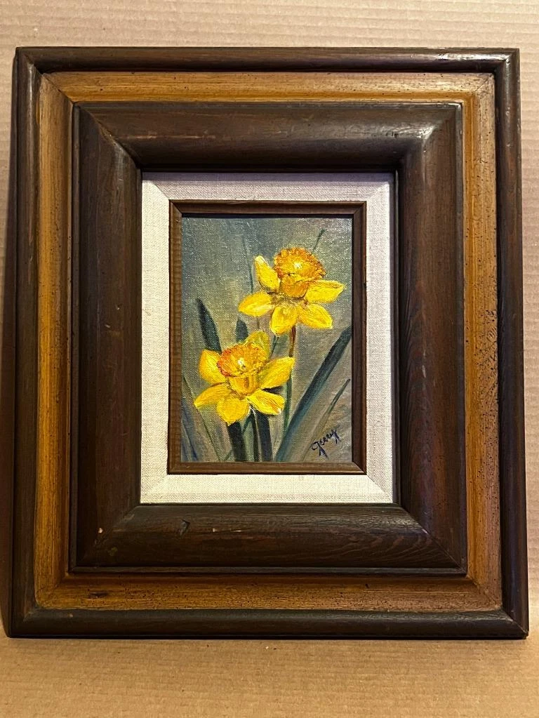 Original Oil Painting Old Vintage Floral Still Life Yellow Daffodils Flowers Art Ebay